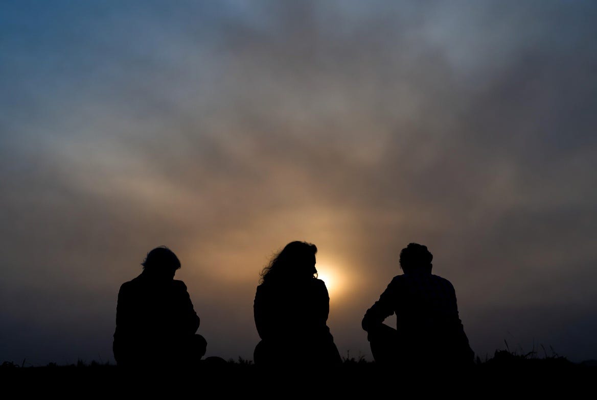 They don’t try to fix it. They don’t explain it. They don’t offer platitudes or spiritual bromides. They simply sit in the ashes with their friend and let their presence say what words cannot.